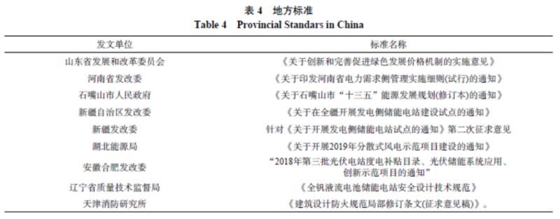 2019年以來,山東、河南、江蘇、青海等地根據(jù)各個省份的自身情況,制定出有關(guān)的儲能相關(guān)標(biāo)準(zhǔn)規(guī)則,如表4所示。