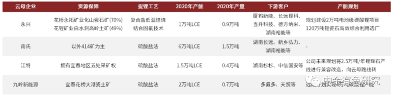 主要云母企業(yè)擴(kuò)產(chǎn)規(guī)劃積極,電池企業(yè)布局或加快江西產(chǎn)能整合。根據(jù)公司公告以及草根調(diào)研,2020年江西主要四家云母生產(chǎn)企業(yè)共生產(chǎn)碳酸鋰約3.5萬噸,且整體擴(kuò)產(chǎn)計劃積極,其中1)南氏已具備6萬噸/年的碳酸鋰產(chǎn)能;2)永興材料當(dāng)前具備1萬噸/年的碳酸鋰產(chǎn)能,擬非公開發(fā)行募集資金建設(shè)2萬噸/年電池級碳酸鋰項目,屆時碳酸鋰產(chǎn)能將達(dá)到3萬噸/年;3)江特當(dāng)前具備云母提鋰產(chǎn)能1.5萬噸/年,目前規(guī)劃進(jìn)行鋰輝石提鋰產(chǎn)線兼容改造,其云母提鋰產(chǎn)能將逐步提升至2萬噸/年以上;4)飛宇新能源當(dāng)前具備2萬噸/年碳酸鋰產(chǎn)能,遠(yuǎn)期計劃實現(xiàn)4萬噸/年碳酸鋰產(chǎn)能。