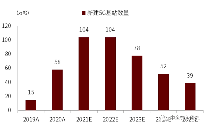 圖表19:2021-2025年我國新建5G基站個數(shù)預(yù)測