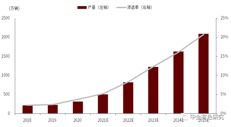 圖表13:2018-2025年歐洲新能源汽車產(chǎn)量預(yù)測