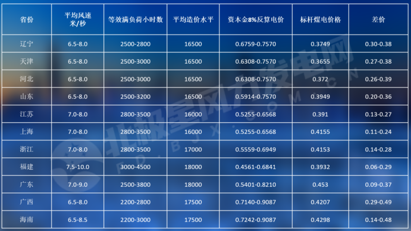 但當前,距離實現(xiàn)平價仍有一定差距,從海上風電項目平均造價方面分析來看,由于遼寧、廣東、福建地區(qū)海床復雜,存在嵌巖等情況,所以造價偏高。江蘇區(qū)域?qū)τ诼氏葘崿F(xiàn)平價來說有更好的條件。