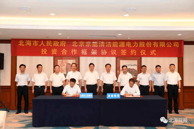 7月9日下午,北海市人民政府與北京京能清潔能源電力股份有限公司(以下簡稱“京能清潔能源公司”)在香格里拉大酒店舉行投資合作框架協(xié)議簽約儀式。