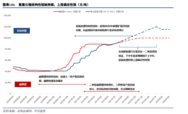 供給上,氫氧化鋰結(jié)構(gòu)性短缺延續(xù),碳酸鋰雖然2021年有產(chǎn)能落地,但實(shí)際產(chǎn)能釋放可能仍然有限;