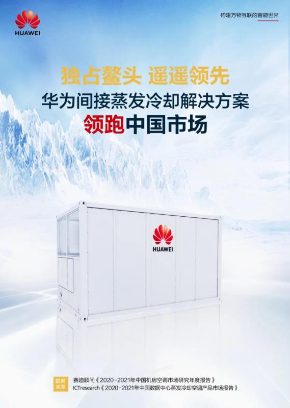 賽迪顧問《2020-2021年中國機(jī)房空調(diào)市場研究年度報告》指出,華為持續(xù)在間接蒸發(fā)冷卻上進(jìn)行技術(shù)革新,推動間接蒸發(fā)冷卻技術(shù)向智能化發(fā)展,并在運(yùn)營商、IDC、政府等各行各業(yè)均得到廣泛應(yīng)用及認(rèn)可。2020 年,華為間接蒸發(fā)冷卻解決方案問鼎中國市場排名第一。