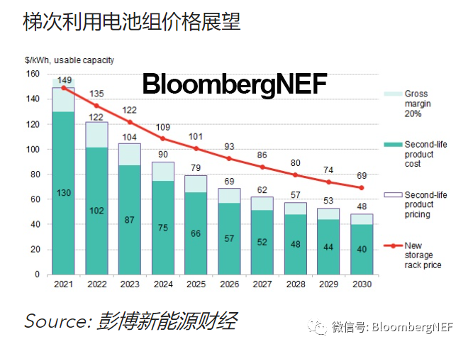 預(yù)計(jì)2030年梯次利用電池組的價(jià)格