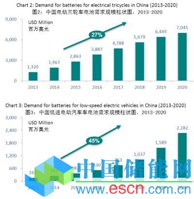 報告顯示,隨著農村地區(qū)消費實力的進一步釋放,截止2013年年末中國電動自行車保有量已超過1.2億輛,益普索預測到2020年,中國電動自行車的保有量將達到1.6億輛,2013年至2020年期間年復合年增長率為4%,而電動自行車動力電池的銷售額預計在此期間實現(xiàn)6%的年復合增長率,一級市場和二級市場的銷售額預計達到76億美元。據(jù)益普索報告數(shù)據(jù)分析,受農村市場中老年人的追捧,電動三輪車銷售增速進一步加快,2013年保有量達到2093萬輛,同比增長46%;到2020年,鑒于中國老齡化人口的不斷增多,保有量有望攀升至1.02億輛,而電動三輪車動力電池的銷售額預計在2013年至2020年間取得27%的復合年增長率,達到70億美元,屆時形成與電動自行車電池需求幾乎同等規(guī)模的龐大市場。
