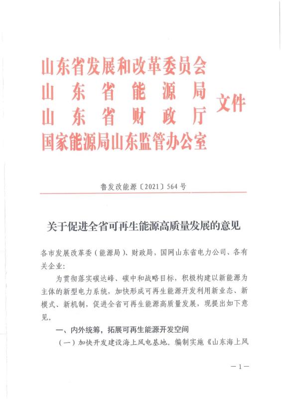 今日(7月16日)上午,山東省能源局發(fā)布了《關(guān)于促進(jìn)全省可再生能源高質(zhì)量發(fā)展的意見》,意見提到,為貫徹落實(shí)碳達(dá)峰、碳中和戰(zhàn)略目標(biāo),積極構(gòu)建以新能源為主體的新型電力系統(tǒng),加快形成可再生能源開發(fā)利用新業(yè)態(tài)、新模式、新機(jī)制,促進(jìn)全省可再生能源高質(zhì)量發(fā)展,提出一系列意見。