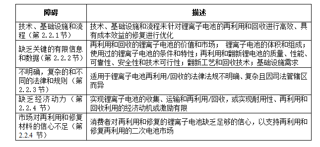表2、鋰離子電池循環(huán)經(jīng)濟的障礙