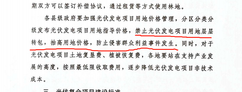 一方面,榆林市文件中要求“光伏發(fā)電項(xiàng)目需提供與縣級(jí)可再生能源平臺(tái)公司簽訂的土地租賃協(xié)議”,即意味著光伏企業(yè)需要從縣級(jí)可再生能源平臺(tái)公司轉(zhuǎn)租土地。但陜西省能源局于2020年5月下發(fā)的用地文件明確強(qiáng)調(diào)“禁止光伏發(fā)電項(xiàng)目用地層層轉(zhuǎn)包,抬高用地價(jià)格,防止侵害群眾利益事情發(fā)生。”