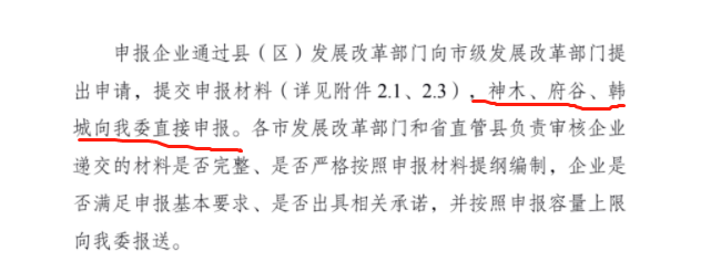 另一方面,陜西省2021年風(fēng)、光項(xiàng)目申報(bào)文件中特別指出神木、府谷兩縣直接向省級(jí)發(fā)改委報(bào)送申報(bào)材料,但根據(jù)榆林市文件要求各縣市區(qū)方案必須經(jīng)過(guò)榆林市可再生能源發(fā)展領(lǐng)導(dǎo)小組審核。