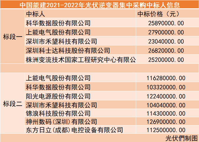 以下是具體逆變器中標(biāo)人信息以及中標(biāo)價格: