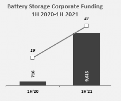 調(diào)查表明,電池儲能廠商在2020年上半年達成的19筆交易中籌集了7.16億美元,而今年上半年達成41筆交易籌集近100億美元