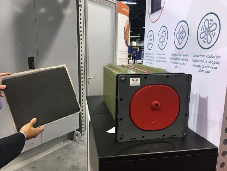 Eos公司于2018年在加利福尼亞舉行的國(guó)際太陽(yáng)能展會(huì)上推出的鋅混合陰極電池組