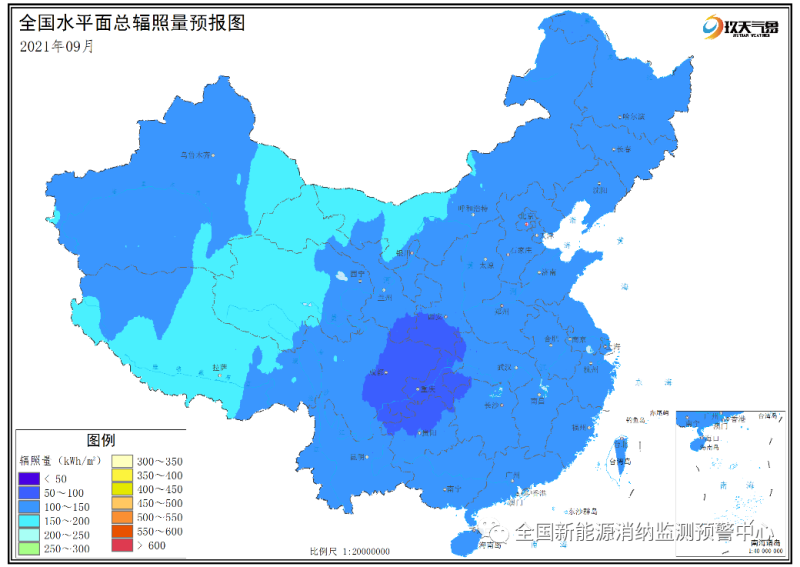 附圖6 全國2021年9月水平面總輻照量預(yù)報圖