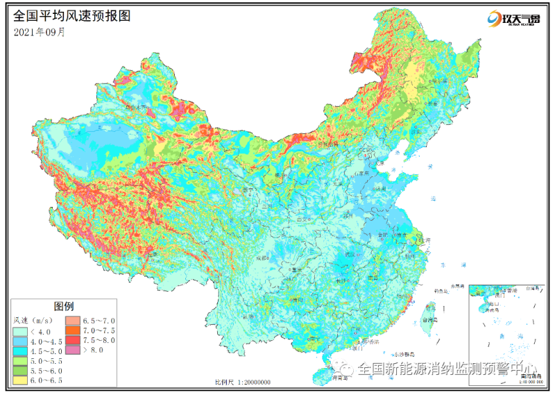 附圖5 全國2021年9月平均風(fēng)速分布預(yù)報圖