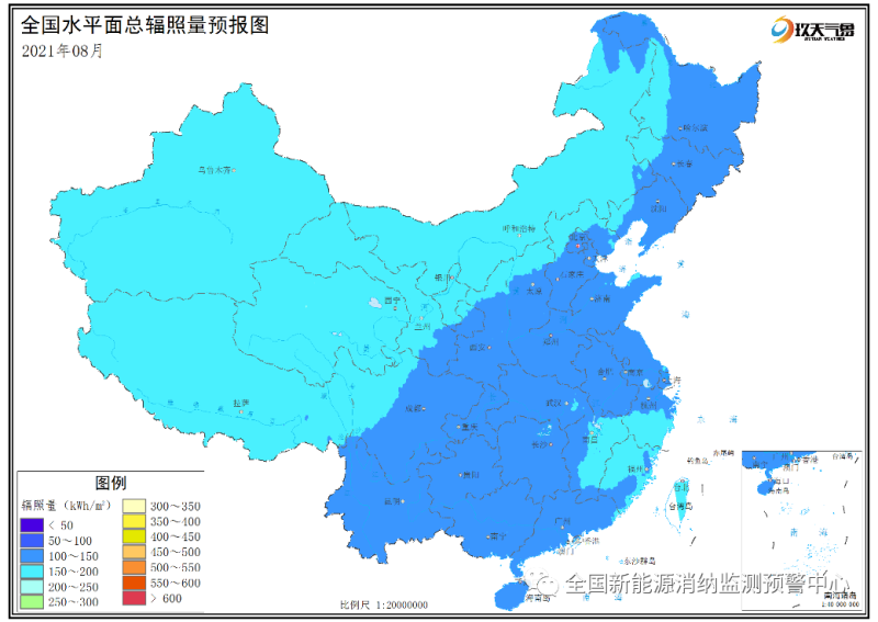 附圖4 全國2021年8月水平面總輻照量預(yù)報圖