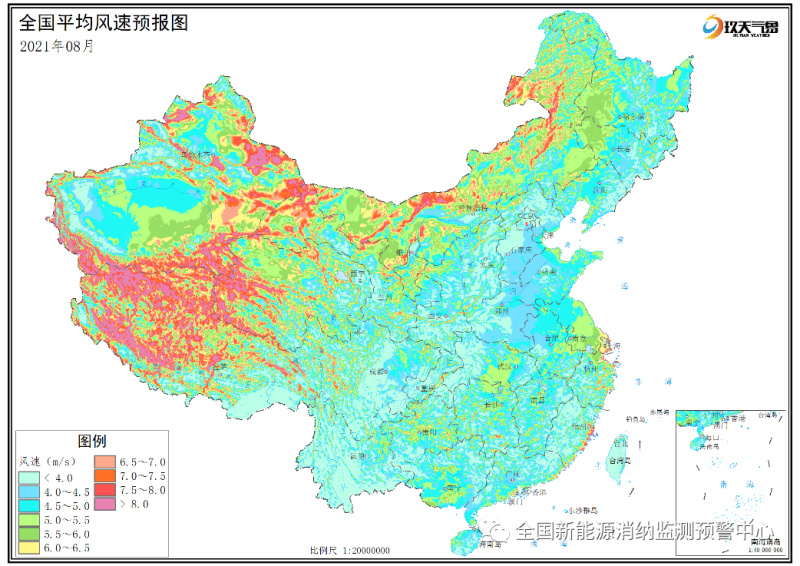 附圖3 全國2021年8月平均風(fēng)速分布預(yù)報圖