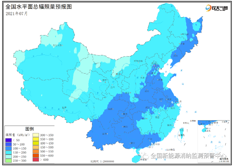附圖2 全國2021年7月水平面總輻照量預(yù)報圖
