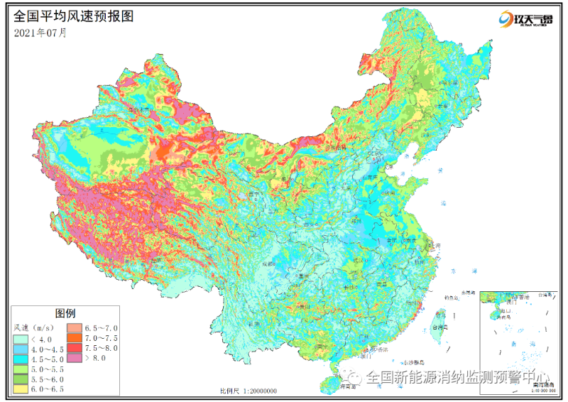 附圖1 全國2021年7月平均風(fēng)速分布預(yù)報圖