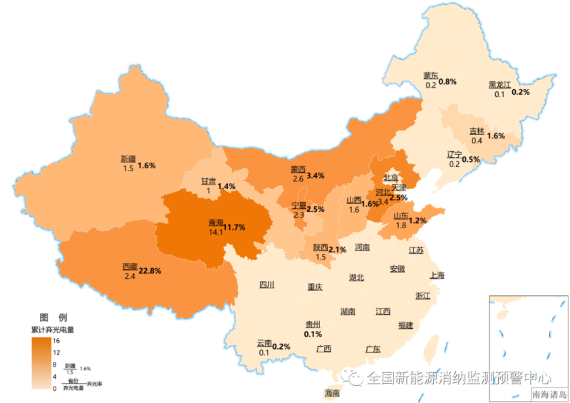 截至6月底各地區(qū)累計棄光電量(億千瓦時)及棄光率