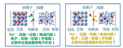 與鋰離子電池的工作原理類(lèi)似,鈉離子電池同樣是一種嵌脫式電池,充電時(shí)鈉離子從正極脫嵌進(jìn)入負(fù)極,放電時(shí)鈉離子從負(fù)極進(jìn)入正極。外電路電子從負(fù)極進(jìn)入正極鈉離子被還原成鈉。