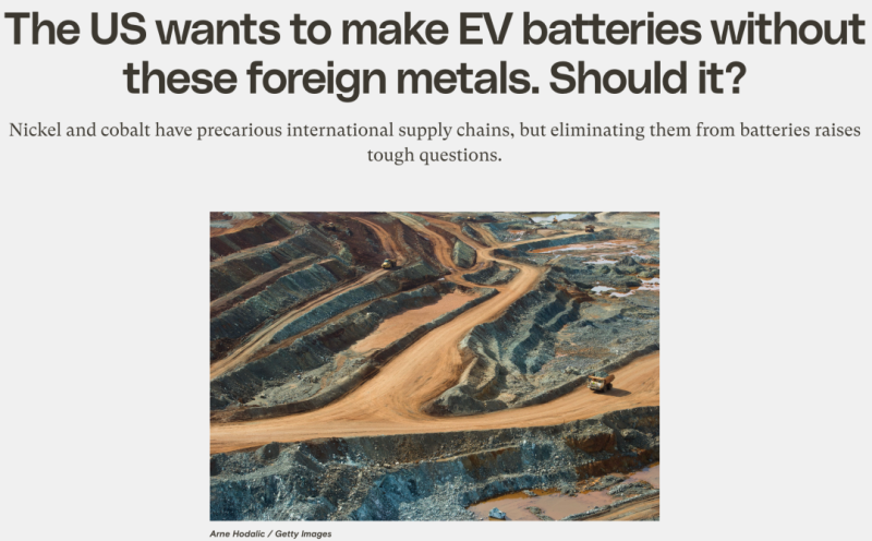 Vox網(wǎng)站發(fā)表文章,題目是:The US wants to make EV batteries without these foreign metals. Should it?(美國希望在沒有來自外國金屬的情況下制造電動(dòng)汽車電池。應(yīng)該嗎?)