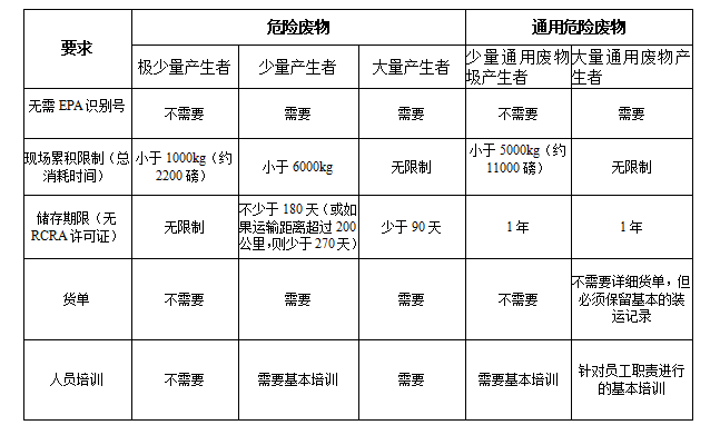 表6美國聯(lián)邦危險廢物產(chǎn)生者和通用廢物處理者要求