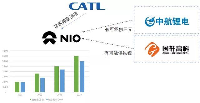 圖3 蔚來(lái)預(yù)測(cè)的電池需求和供應(yīng)商可能性