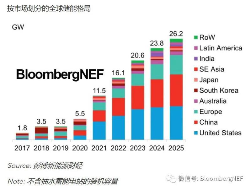 歐洲將是2025年前的第三大儲能市場,電網(wǎng)側(cè)裝機將超過住宅用裝機的規(guī)模。英國、德國、法國、葡萄牙、西班牙和新市場(如波蘭)具備一系列機制,包括混合可再生能源拍賣、電力容量市場、全國性目標和公司承諾。用戶側(cè)裝機將集中于德國和意大利,但比利時在內(nèi)的國家受益于利好政策也開始嶄露頭角。