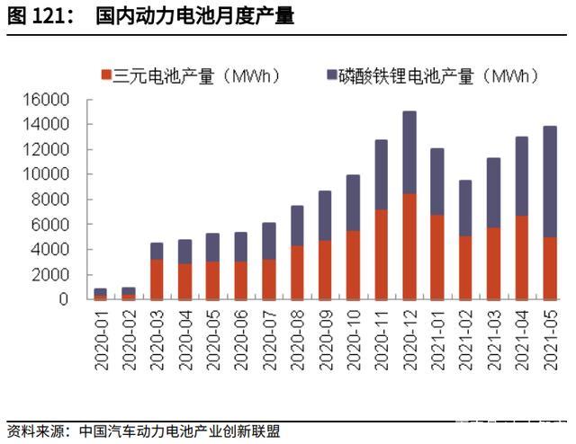 (3)成本層面,三元電池技術(shù)進(jìn)步推動(dòng)成本下降,降本路徑更多,降本空間更 大。因此,三元電池的裝機(jī)量占比提升,而磷酸鐵鋰電池的裝機(jī)量占比下降。