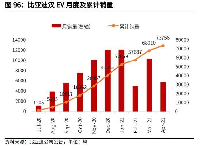此外, 葉片電池變長變薄,其表面積增加,整體散熱更好。電池的短路電路相 對較長,產(chǎn)生的熱量較少,結(jié)合比亞迪的綜合高溫“陶瓷電池”技術(shù),刀片電池 的安全性得到了極大提高,所以刀片電池的性能是非常完美的,首次搭載該刀片 電池的“比亞迪漢 EV”車型自去年 7 月上市以來銷量喜人。