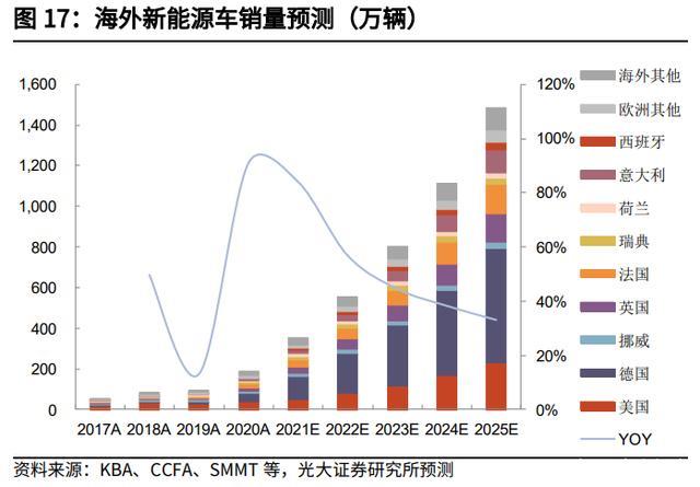 預(yù)計(jì) 2025 年海外新能源汽車銷量 1500 萬輛,動(dòng)力電池裝機(jī)量 757GWh