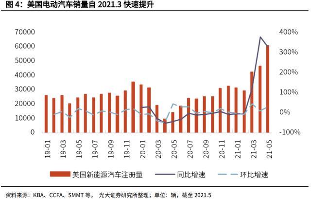 與特朗普政府不同的是,拜登政府出于國際競爭、內(nèi)部政治、提振經(jīng)濟(jì)等因素大 力推動(dòng)“綠色經(jīng)濟(jì)”及新能源發(fā)展。美國總統(tǒng)拜登上任時(shí)宣布了 2 萬億美元的基 建計(jì)劃,其中有 1710 億美元專門用于一系列電動(dòng)出行措施,比如:支持汽車制 造商建立國內(nèi)原材料供應(yīng)鏈,消費(fèi)者將因購買美國制造的電動(dòng)汽車而獲得補(bǔ)貼和 稅收優(yōu)惠,還要求白宮近 65 萬臺(tái)的聯(lián)邦車隊(duì)全部換成電動(dòng)汽車。