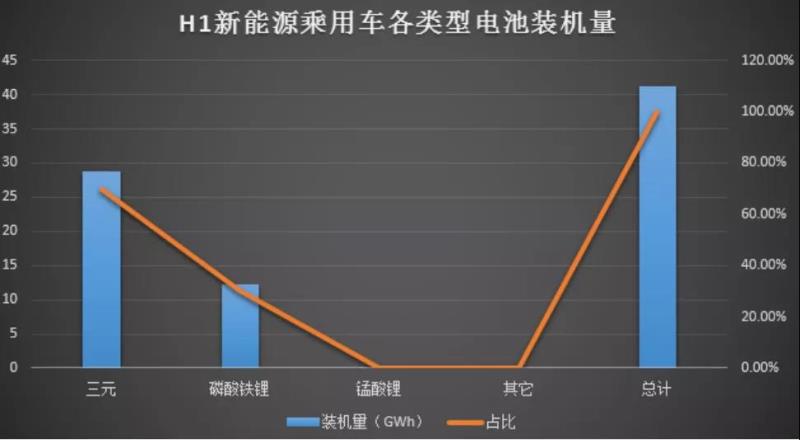 從裝機量電池類型來看,三元電池仍在新能源乘用車領(lǐng)域占據(jù)主要地位,上半年裝機電量約28.82 GWh,占比69.99%;但LFP電池裝機占比迅速提升,裝機電量約12.34 GWh,占比29.98%。
