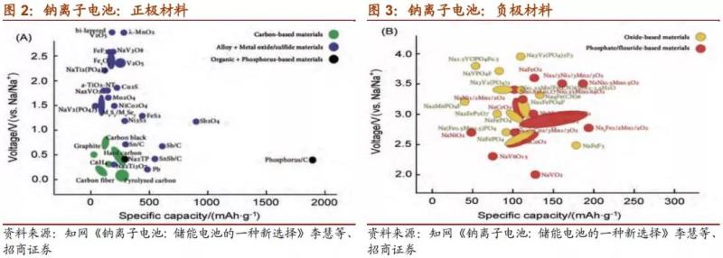 鈉電池簡介。鈉電池工作原理與鋰電池類似,同時生產(chǎn)設備也基本兼容。不過材料體系有較大變化,正極一般采用普魯士白和層狀氧化物,負極選用硬碳,集流體均采用鋁箔,隔膜和電解液沒有大的變化。性能方面,鈉電池在低溫性能、安全性、成本(大規(guī)模量產(chǎn)后)方面具備優(yōu)勢,能量密度和循環(huán)性能均介于鋰電池和鉛酸電池之間。