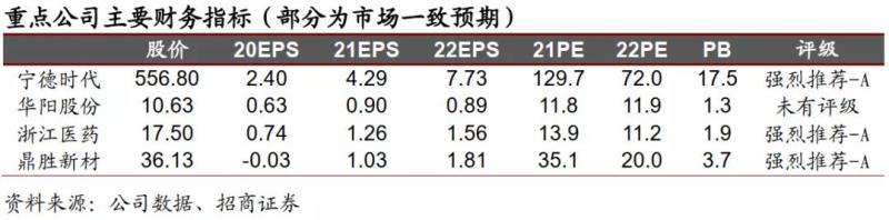 投資建議:繼續(xù)推薦寧德時代,其余關注華陽股份(煤炭)、浙江醫(yī)藥(化工)、鼎盛新材(招商有色)。