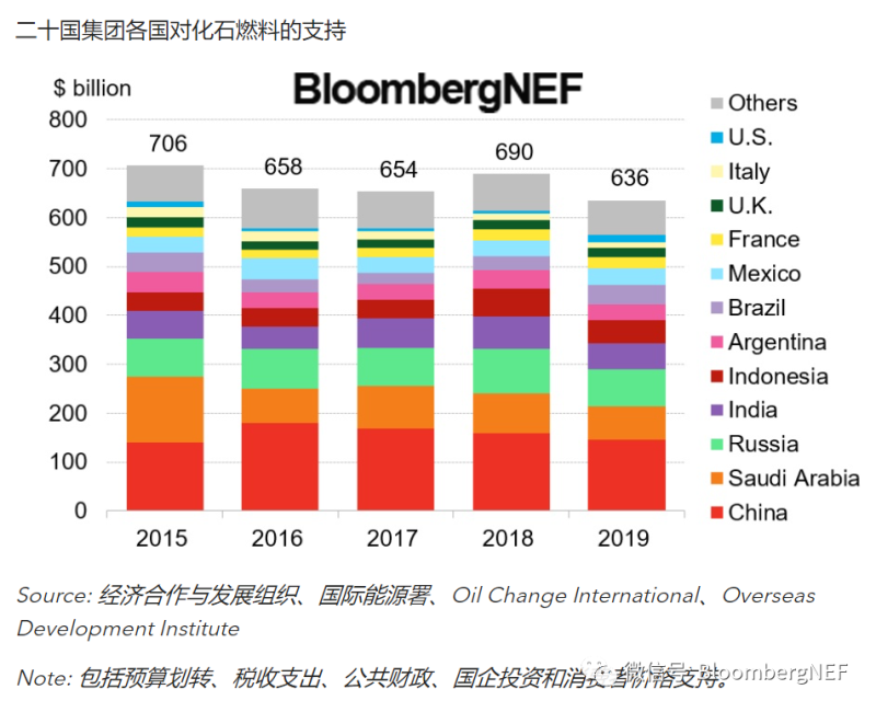 2015-2019年間二十國集團各政府為化石燃料提供的支持總額