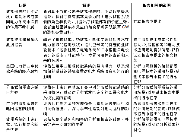 本報(bào)告是美國國家可再生能源實(shí)驗(yàn)室(NREL)發(fā)布的“儲(chǔ)能未來研究(SFS)”系列報(bào)告之一。儲(chǔ)能未來研究(SFS)是一個(gè)持續(xù)多年的研究項(xiàng)目,主要探索儲(chǔ)能系統(tǒng)在美國電力行業(yè)發(fā)展和運(yùn)營中發(fā)揮的作用和影響。該項(xiàng)目旨在研究?jī)?chǔ)能技術(shù)的進(jìn)步對(duì)于部署公用事業(yè)規(guī)模儲(chǔ)能系統(tǒng)和分布式儲(chǔ)能系統(tǒng)的潛在影響,以及對(duì)未來電力系統(tǒng)基礎(chǔ)設(shè)施投資和運(yùn)營的影響。其研究結(jié)果和數(shù)據(jù)將通過一系列出版物對(duì)外發(fā)表。下面表格列出將在儲(chǔ)能未來研究(SFS)項(xiàng)目的計(jì)劃和研究主題。