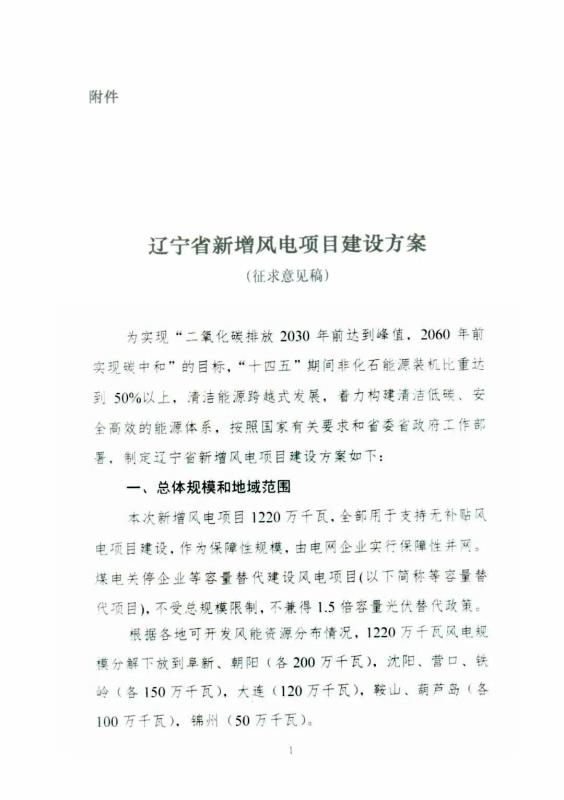 近日,遼寧省發(fā)改委起草并印發(fā)了《遼寧省新增風(fēng)電項目建設(shè)方案》(征求意見稿),明確提出新增風(fēng)電規(guī)模為12.2GW,全部用于無補(bǔ)貼風(fēng)電項目建設(shè),由電網(wǎng)企業(yè)實行保障性并網(wǎng)。