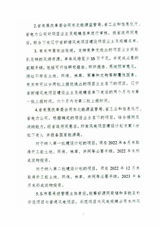 具體縣、市新增風(fēng)電項目建設(shè)分配方面,阜新、朝陽各分得2GW,沈陽、營口、鐵嶺各分得1.5GW,大連分得1.2GW,鞍山、葫蘆島各分得1GW,錦州分得500MW。