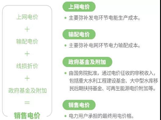 電力用戶承擔(dān)的終端銷售電價(jià),由上網(wǎng)電價(jià)、輸配電價(jià)、政府性基金及附加組成。