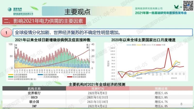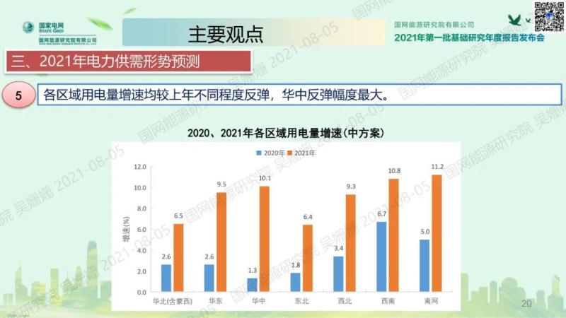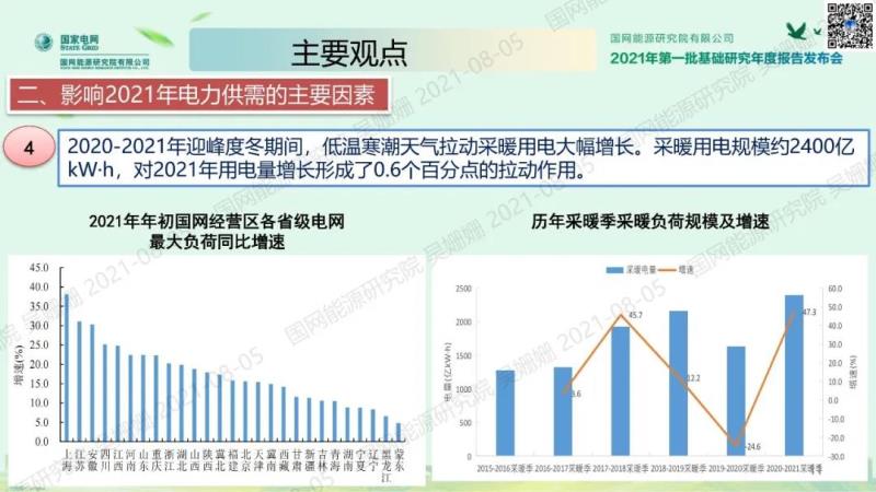 其中,《中國(guó)電力供需分析報(bào)告 2021》由經(jīng)濟(jì)與能源供需研究所編著,宏觀經(jīng)濟(jì)研究室主任吳姍姍代表編寫組發(fā)布。報(bào)告對(duì)2020年國(guó)際國(guó)內(nèi)經(jīng)濟(jì)運(yùn)行、全國(guó)及各地區(qū)電力消費(fèi)、電力供應(yīng)、電力供需形勢(shì)進(jìn)行了全面分析和總結(jié),綜合考慮宏觀調(diào)控政策、新冠肺炎疫情、三大需求、重點(diǎn)行業(yè)、業(yè)擴(kuò)報(bào)裝、氣溫來(lái)水、環(huán)保政策、電能替代、發(fā)電能源等主要影響因素,對(duì)2021年全國(guó)及各地區(qū)經(jīng)濟(jì)、電力需求、電力供應(yīng)、電力供需形勢(shì)進(jìn)行了分析預(yù)測(cè)。