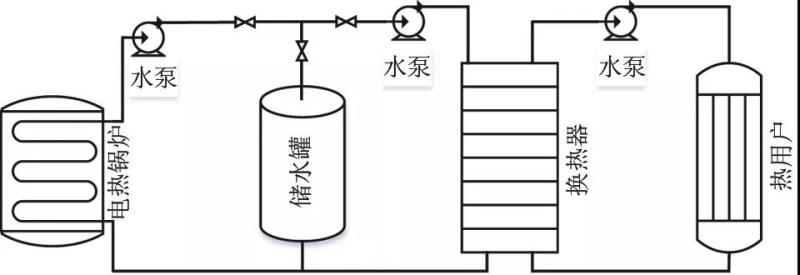 水儲熱技術是最早應用于清潔供暖系統(tǒng)的技術之一,其結構原理圖見圖5,主要是在谷值電價時利用電鍋爐進行熱水加熱,儲于儲水罐;在峰值電價時利用儲水罐熱水供暖。水儲熱技術具有熱效率高、運行費用低、運行安全穩(wěn)定、維修方便等優(yōu)點,在國內外都有很多應用實例,但是也存在儲水罐體積較大、受占地空間限制等問題。
