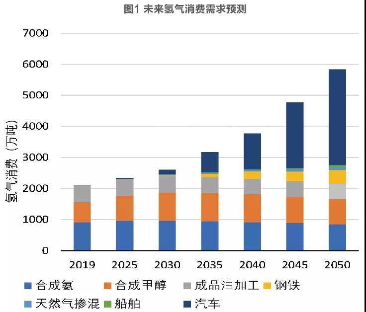 據(jù)中國氫能聯(lián)盟預(yù)計,到2030年中國氫氣需求量將達到3500萬噸,在終端能源體系中占比5%,主要增量來自交通運輸?shù)娜剂想姵剀?,產(chǎn)能缺口約1000萬噸/年;到2050年氫能將在中國終端能源體系中占比至少達到10%,氫氣需求量接近6000萬噸,其中交通運輸領(lǐng)域用氫2458萬噸,工業(yè)領(lǐng)域3370萬噸,其他領(lǐng)域110萬噸,產(chǎn)業(yè)鏈年產(chǎn)值約12萬億元,產(chǎn)能缺口約3500萬噸/年。