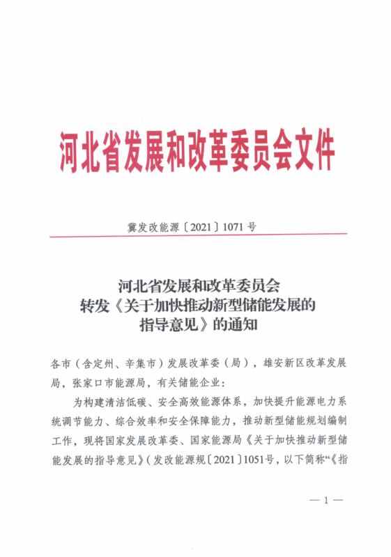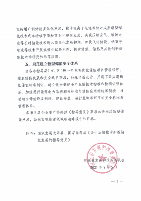 8月5日,河北省發(fā)改委印發(fā)《關(guān)于加快推動(dòng)新型儲(chǔ)能發(fā)展的指導(dǎo)意見》的通知,要求各市在充分掌握電力系統(tǒng)實(shí)際情況、資源條件、建設(shè)能力等基礎(chǔ)上,按年度編制新型儲(chǔ)能發(fā)展方案。
