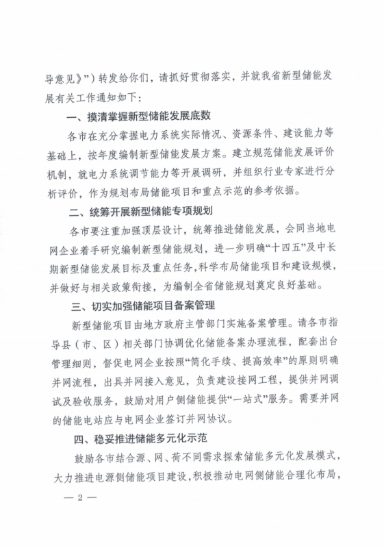 鼓勵(lì)各市結(jié)合源、網(wǎng)、荷不同需求探索儲(chǔ)能多元化發(fā)展模式, 大力推進(jìn)電源側(cè)儲(chǔ)能項(xiàng)目建設(shè),積極推動(dòng)電網(wǎng)側(cè)儲(chǔ)能合理化布局, 支持用戶側(cè)儲(chǔ)能多元化發(fā)展,推動(dòng)鋰離子電池等相對成熟新型儲(chǔ)能技術(shù)成本持續(xù)下降和商業(yè)化規(guī)模應(yīng)用。