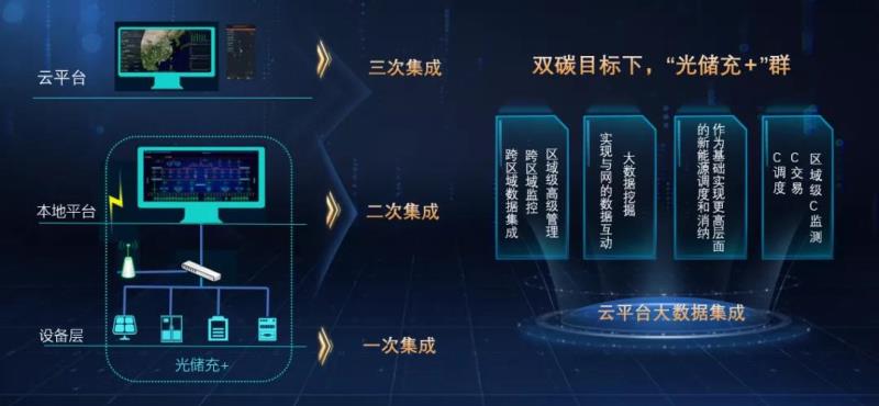 領(lǐng)充創(chuàng)新提出了三次集成技術(shù),通過對設(shè)備層、監(jiān)控層、云平臺的三次集成管理,構(gòu)建雙碳下“光儲充+”群的大數(shù)據(jù)云平臺。在設(shè)備側(cè)實現(xiàn)分組監(jiān)控;在站控側(cè)實現(xiàn)平臺可視可控;在大數(shù)據(jù)云平臺,實現(xiàn)跨區(qū)域數(shù)據(jù)集成,跨區(qū)域監(jiān)控,跨區(qū)域高級管理,從而實現(xiàn)更高層面的能源調(diào)度和消納。