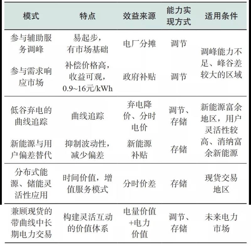 (1)總結(jié)需求側(cè)參與調(diào)峰輔助服務(wù)、需求響應(yīng)、可再生能源棄電消納、分布式資源靈活互動以及電力中長期交易多種機制下的交易機制;