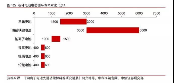 ▲ 各種電池電芯循環(huán)壽命對比(次)