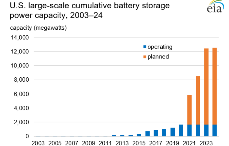 美國能源信息署(EIA)日前發(fā)布一份名為《美國的電池儲能系統(tǒng):市場趨勢的更新》調查報告,其中詳細介紹了美國儲能市場發(fā)展情況。
